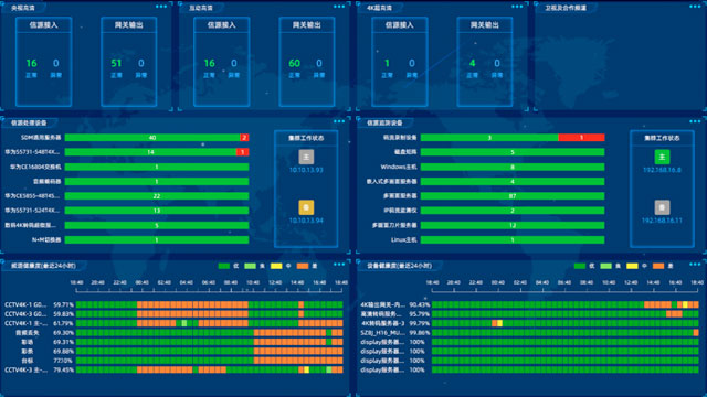 全局掌握运营商各业务安播态势,对上游节目源供给质量、下游终端的分发效果做出准确评估;细致测评各频道、各栏目、各设备的健康度,提供主动运维的预测性参考。